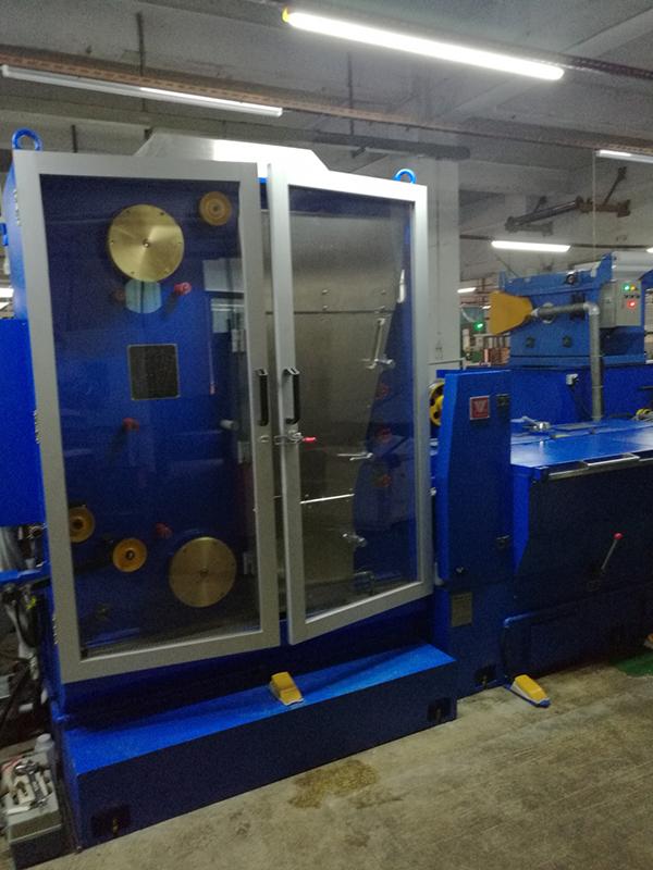 Tandem wire drawing and wire coating extruder production line is an extrusion equipment which extrudes a thick steel wire into a wire core, including conductor drawing and extrusion of insulation materials. The wire core extruder achieves copper wire drawing and extrusion of PE insulation material via tandem process, the core wire has greater concentricity after the cable is formed and the conductor is not easily damaged. This wire coating extruder production line is suitable for cat5 cable, cat6 cable and telecommunication cable.